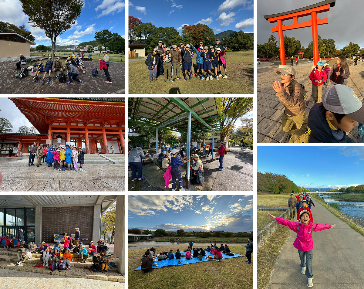 下鴨神社楼門に集合。参拝後、準備運動・記念撮影を行い、おやつを配給。30キロハイクに出発。